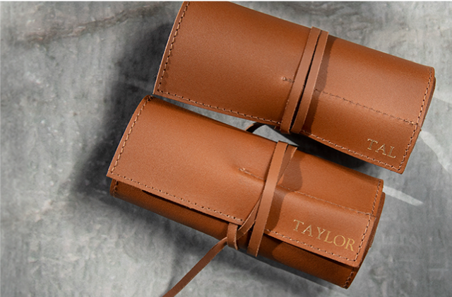 All personalisation is in house, each monogram or logo is pressed by hand, using quality brass type providing a clear and most precise impression into the leather.